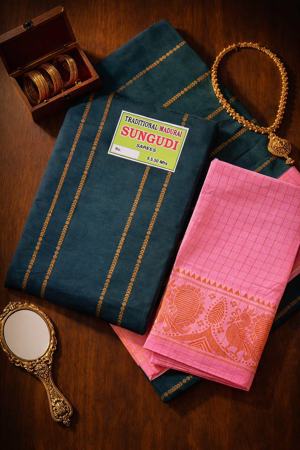 Fabric- Madurai Sungudi Cotton | Gold Zari